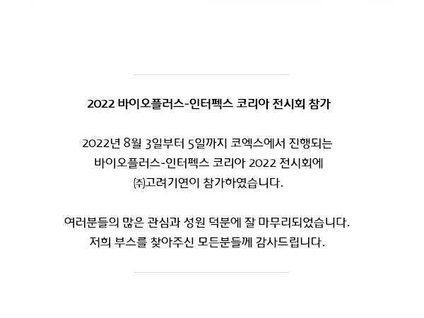2022 바이오플러스-인터펙스 코리아 전시회 ㈜고려기연 부스를 방문해주셔서 감사합니다.