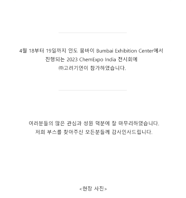 2023 ChemExpo India 전시회에 ㈜고려기연 부스를 방문해주셔서 감사합니다.