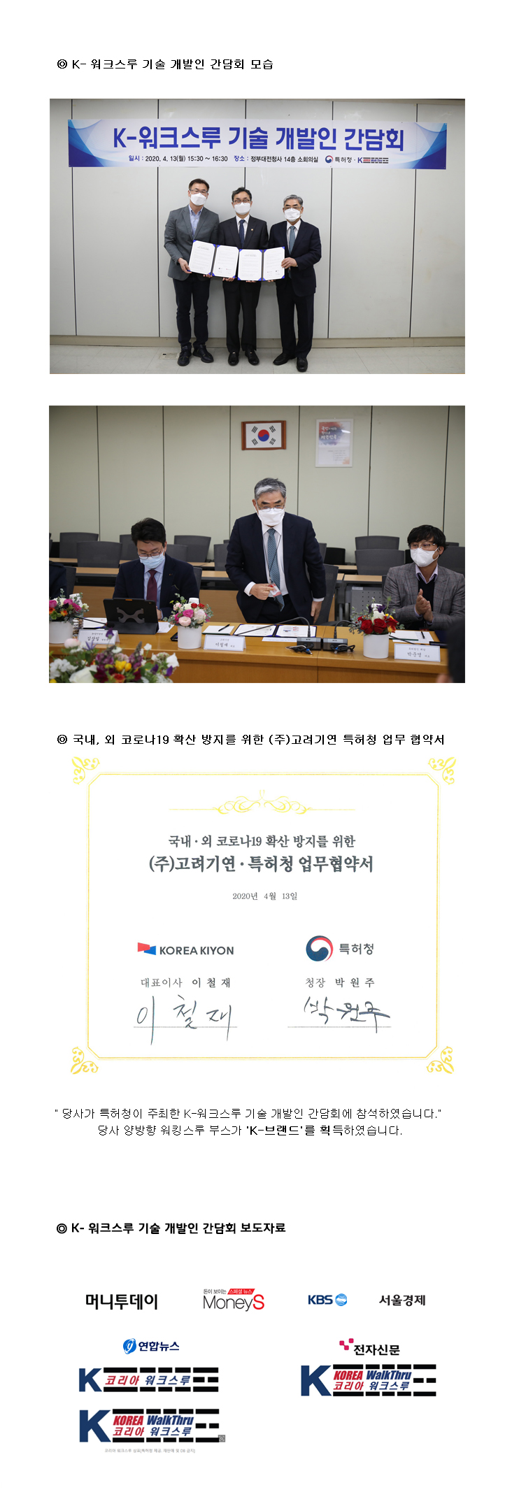 전자신문 : 특허청, 세계 코로나19 확산 막는 'K-워크스루' 기술 해외진출 지원 논의
